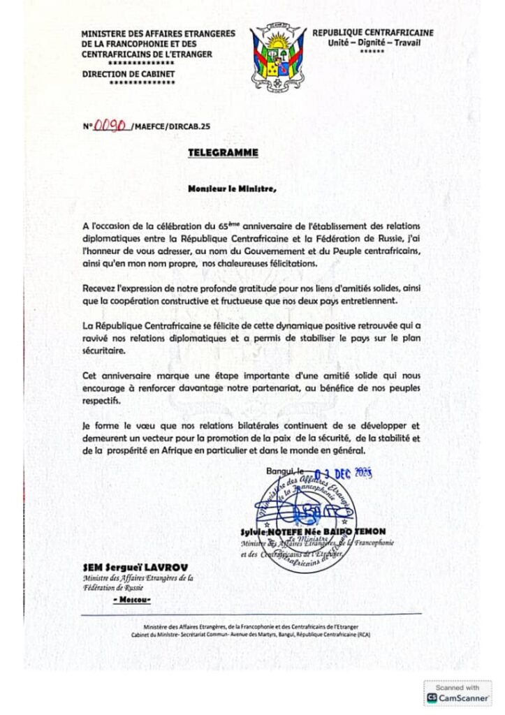 Lettre de reconnaissance de la RCA à la Fédération de la RussieAccueilAMDéc9 par Karl Ngrebada karlngrebada1@gmail.com 9 décembre 2025 0 6 minutes Actualités Diplomatie Navigation de l’article Article précédent Laisser un commentaire Annuler la réponseVotre adresse e-mail ne sera pas publiée. Les champs obligatoires sont indiqués avec *Commentaire * Nom * E-mail * Site web Enregistrer mon nom, mon e-mail et mon site dans le navigateur pour mon prochain commentaire.